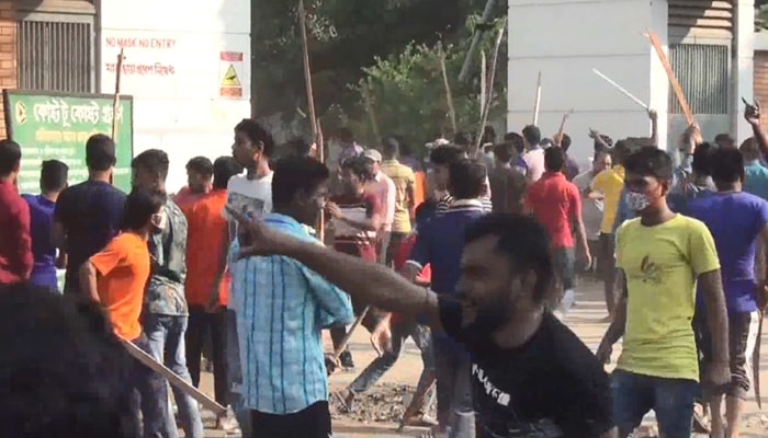 এক পর্যায়ে তারা ঢাকা টাঙ্গাইল মহাসড়কে অবস্থান নিয়ে সড়ক অবরোধ করে। এ সময় তারা অপর একটি কারখানায় ভাঙচুর চালায় এবং বেশ কিছু গাড়ির কাঁচ ভাঙচুর করে। ইটপাটকেল নিক্ষেপ ও হামলার ঘটনায় শ্রমিক ও পথচারীসহ অন্তত ১০ জন আহত হন।