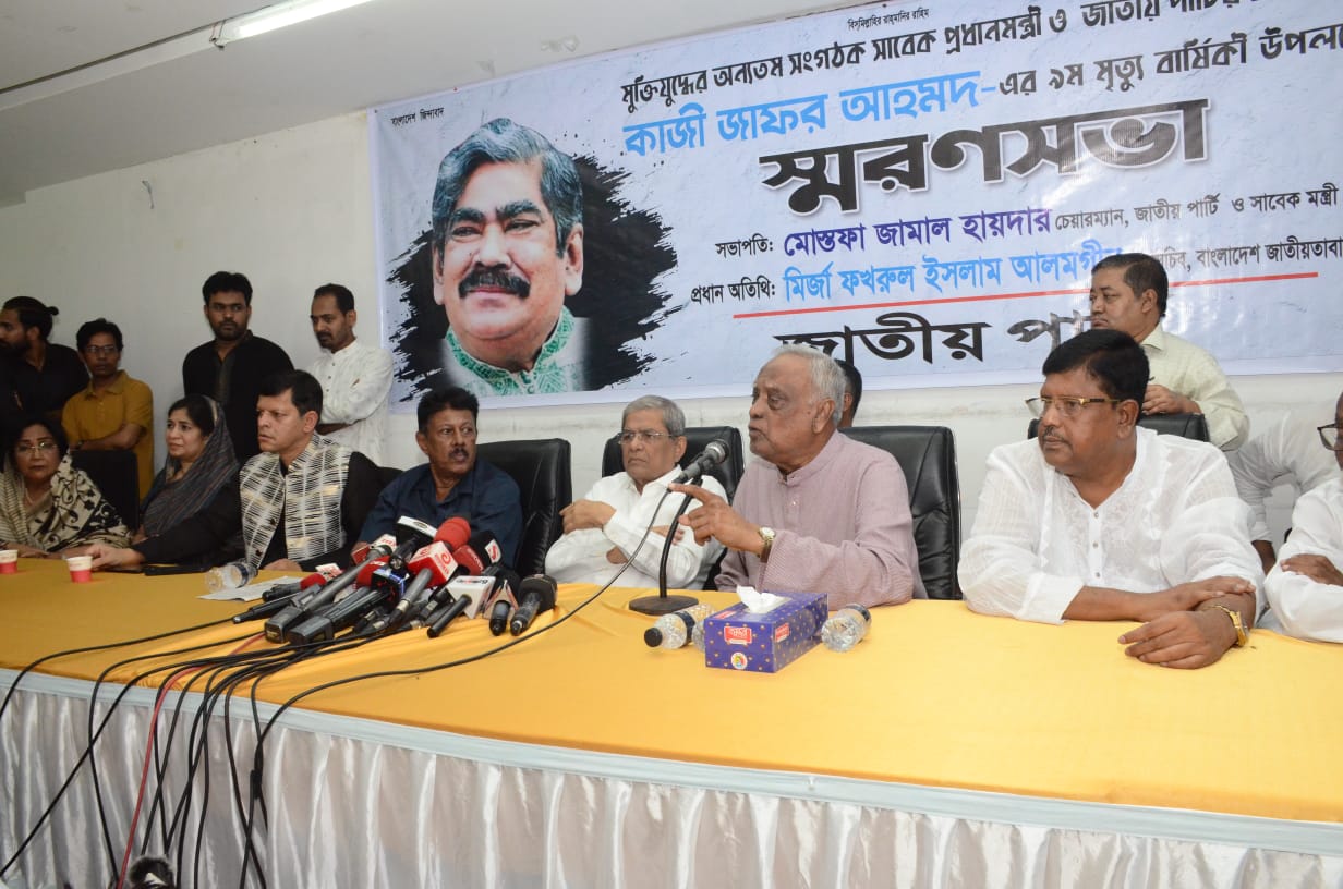 মুক্তিযুদ্ধের অন্যতম সংগঠক, বীর মুক্তিযোদ্ধা, সাবেক প্রধানমন্ত্রী ও জাতীয় পার্টির চেয়ারম্যান কাজী জাফর আহমদ এর ৯ম মৃত্যুবার্ষিকী উপলক্ষে আজ ২৬ আগস্ট সোমবার সকাল ১১টায় জাতীয় প্রেস ক্লাবে স্মরণ সভা অনুষ্ঠিত হয়।